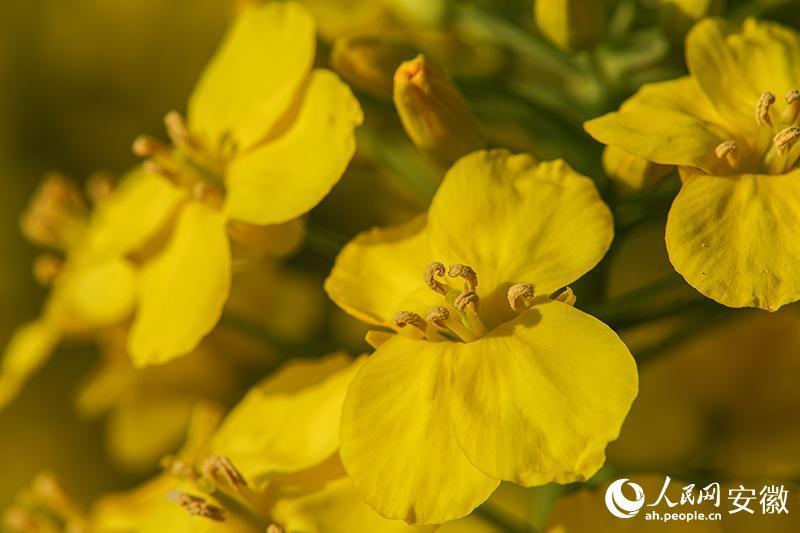 鹅黄色的油菜花瓣,两两相对,中间花蕊清晰可见。人民网记者 陶涛摄