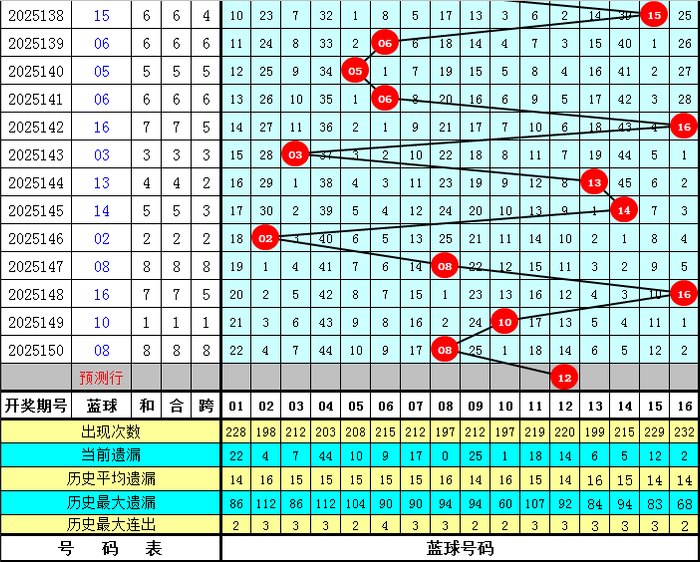 遗漏分析:最近7期红球遗漏总值分别为:32、29、32、19、18、42、42,开出5个遗漏值9以上的冷码红球,目前红球遗漏值9以上的冷码红球有4个:14、16、21、29,本期注意冷码解冻,参考红球号码21。